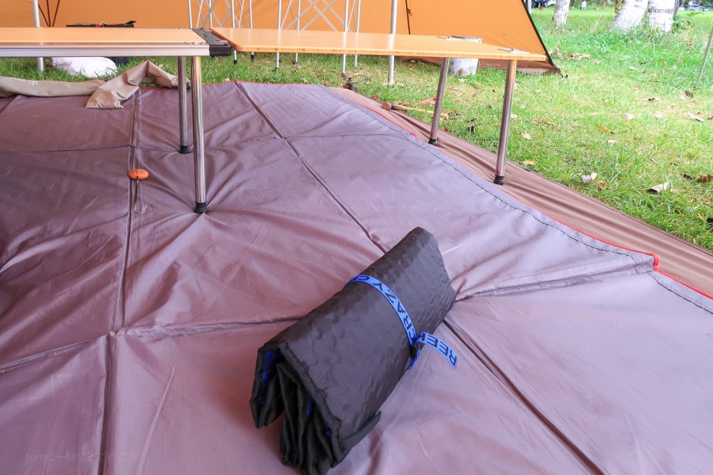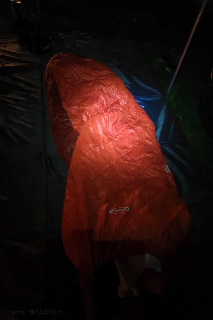 今回は、お座敷スタイルのビッグタープにお邪魔。寝袋だけ敷いて寝ます。