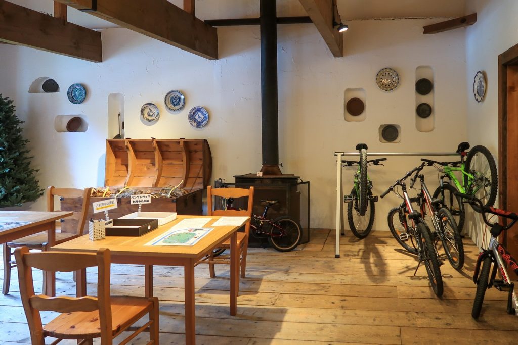 貸し出しする自転車や、薪はここにおいていあります。